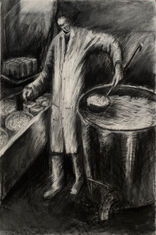 Her interest in charcoal began with her documentary project on Somerset's willow growers and basket makers. Somerset willow makes soft velvety charcoal used by artists. The average size of works is 70 x60cm.