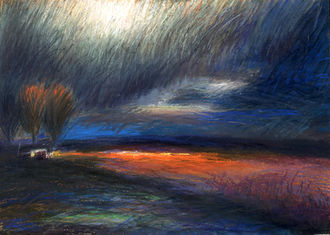 Kate works using soft pastels, often mixing in willow charcoal. Subject matter includes the mother and child theme, mummers, cider wassails and old Somerset farming and rural traditions.
